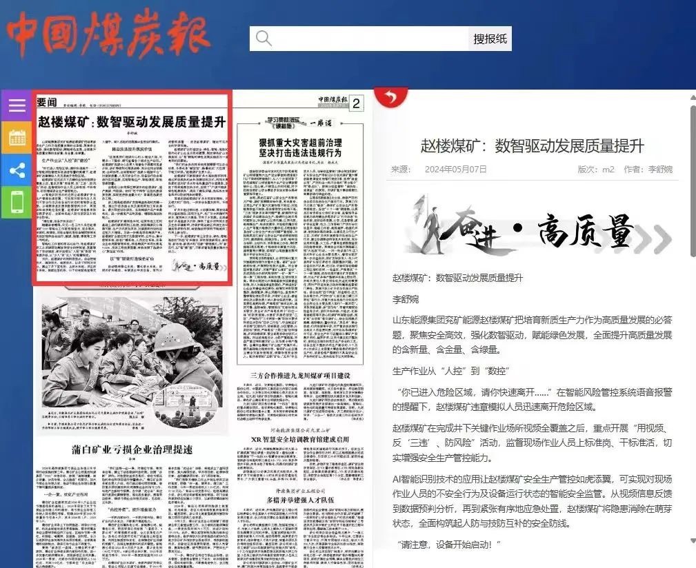 主流媒体看赵楼 · 中国煤炭报 | 数智驱动发展质量提升